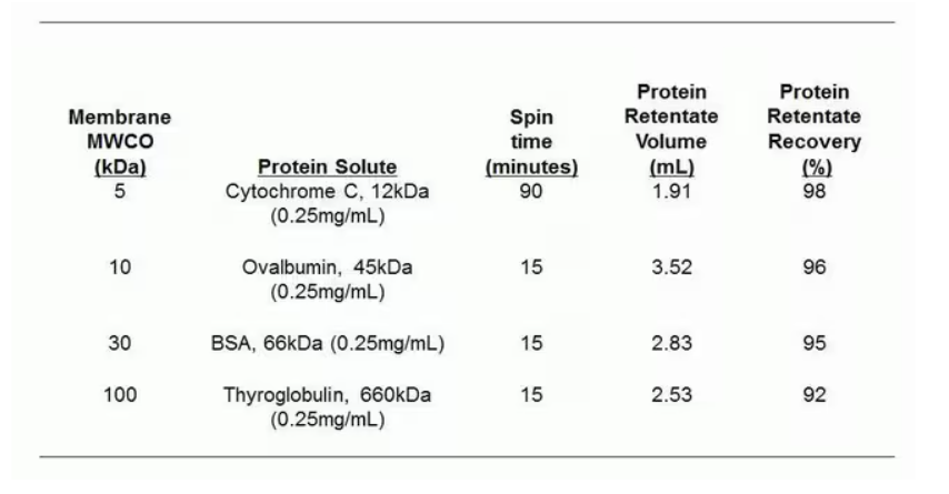 •快速蛋白浓缩—可在 5-30 分钟内将 10K MWCO 的样品浓缩 10 至 30 倍(不同 MWCO 的产品所用时间可能不同)