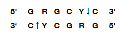 Thermo Scientific Eco24I (BanII) 限制性内切酶可识别 GRGCY^C 位点,并于37°C下在 Tango 缓冲液中的切割效果最佳(同裂酶:BanII、EcoT38I、FriOI)。有关本限制性内切酶及其他限制性内切酶的酶活性、双酶切条件和热灭活的表格,请参见限制性内切酶的反应条件。 |