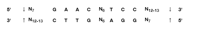 Thermo Scientific AloI 限制性内切酶可识别 ^(7/12-13)GAAC(N)6TCC(12-13/7)^ 位点,并于 30°C在 R 缓冲液中的切割效果最佳。有关本限制性内切酶及其他限制性内切酶的酶活性、双酶切条件和热灭活的表格,请参见限制性内切酶的反应条件。 |