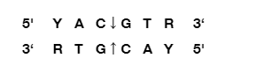 Thermo Scientific FastDigest Ppu21I 限制性内切酶可识别 YAC^GTR 位点,并于37°C 下使用通用 FastDigest 缓冲液在5–15分钟内的切割效果最佳。同裂酶:BsaAI、BstBAI。 |