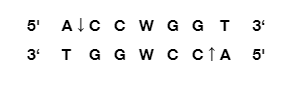 Thermo Scientific FastDigest CsiI 限制性内切酶可识别 A^CCWGGT 位点,并使用通用 FastDigest 缓冲液于37°C 下在5–15分钟的切割效果最佳。同裂酶:SexAI、MabI。 |
