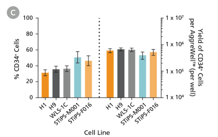 - 一致。使用无血清和无饲养层的配方,消除了因血清和基质细胞系引起的差异。 - 均一。用AggreWell™可以产生均一的EB,降低可变性。 - 产量高。每个PSC衍生的CD34+细胞分别可产生210个CD56 + NK细胞。 - 方便。避免基于培养基质细胞所需的额外传代步骤。 |