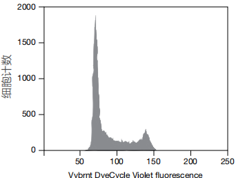 图2. Vybrant DyeCycle Violet stain染料染色Jurkat活细胞后得出DNA含量分布直方图