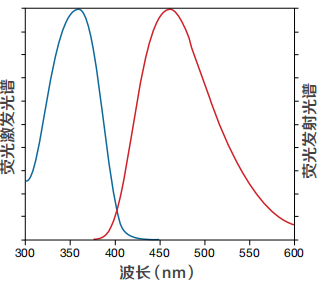 Vybrant DyeCycle Violet stain染料的荧光激发和发射光谱如图1所示,这个光谱是在样本中通过Vybrant DyeCycle Violet stain染料与DNA结合得到的。